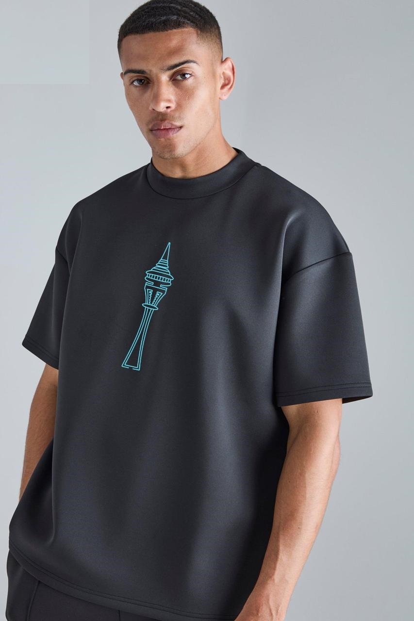 An elevated take on streetwear, this oversized t-shirt anchors the Apex Collection. Crafted from a premium, structured fabric for a clean, boxy drape, the piece is defined by the contrasting, neon-outline graphic of a globally recognized tower. It’s a tribute to modern architecture and urban landscapes, rendered with minimalist precision. Sophisticated structure meets iconic silhouette.